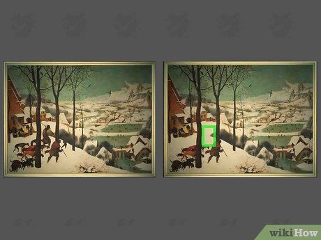 Tranh phong cảnh Trong phiên bản giả của tranh phong cảnh, chỉ có một thợ săn đứng ở góc dưới bên trái của bức tranh. Nếu có hai thợ săn, đó là bức tranh thật.