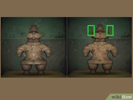 Tượng cổ xưa Phiên bản giả của tượng cổ xưa có râu trên đầu. Mắt của tượng cũng sẽ phát sáng vào ban đêm và nó sẽ nổi lên nếu được tương tác. Tượng thật không có râu, không phát sáng và không nổi.
