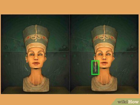 Tượng đầu đá Trong phiên bản giả của tượng đầu đá, tượng đang mỉm cười. Nếu tượng có biểu cảm trung lập, đó là phiên bản thật.