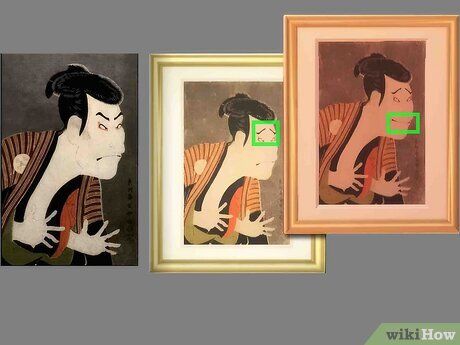 Tranh trang nghiêm Trong phiên bản giả của tranh trang nghiêm, người đàn ông trong nền đang giơ tay phải để vẫy. Nếu tay của anh ấy ở phía sau tấm rèm, đó là bức tranh thật.