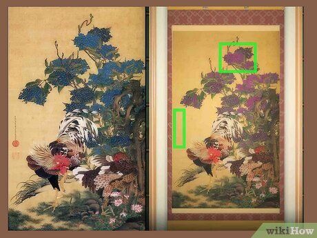 Tranh cổ kính Trong phiên bản giả của tranh cổ kính, chất lỏng được đổ từ bình có bề rộng lớn. Nếu chất lỏng chảy ra thành một dòng mỏng, đó là bức tranh thật.