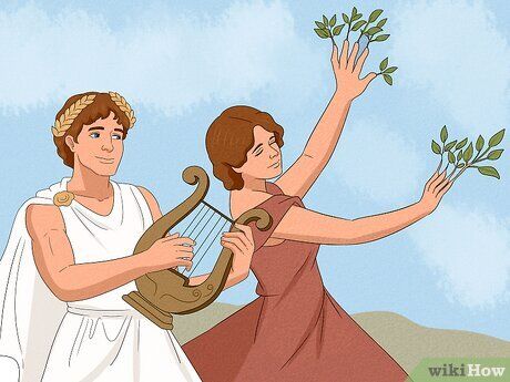 Apollo và Daphne Theo huyền thoại, Apollo đã phải lòng nàng tiên Daphne xinh đẹp. Tuy nhiên, Daphne không yêu Apollo. Ông vẫn tiếp tục theo đuổi cô, khiến Daphne cầu xin các vị thần giúp đỡ. Trong hầu hết các huyền thoại, Gaia đã trả lời lời cầu nguyện của cô và biến Daphne thành một cây nguyệt quế. Apollo sau đó lấy một cành cây và quấn nó quanh đầu mình.