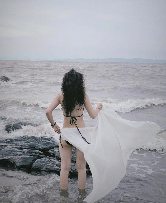 Tuyển tập ảnh quyến rũ với tạo dáng quay lưng đầy nghệ thuật giữa biển xanh