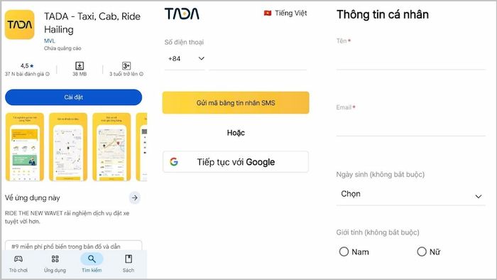 Bước 2: Khi quá trình cài đặt hoàn tất, khởi chạy ứng dụng TADA → Điền số điện thoại di động của bạn để bắt đầu đăng ký → Nhập mã OTP đã được gửi tin nhắn về máy → Cung cấp các thông tin cá nhân cần thiết để hoàn thành việc thiết lập tài khoản.