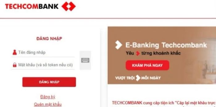 Truy cập vào trang web Internet Banking Techcombank và đăng nhập bằng tài khoản ngân hàng