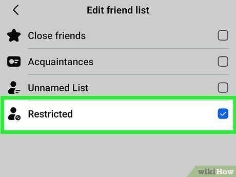 - Thêm người đó vào danh sách bị giới hạn. Nếu bạn không muốn hủy kết bạn nhưng cũng không muốn họ thấy các bài đăng chỉ dành cho bạn bè, bạn có thể giới hạn họ. Họ vẫn sẽ thấy các bài công khai, nhưng nếu bạn đăng bài riêng tư, họ sẽ không biết. Để giới hạn một người trên Facebook: