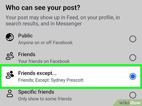 - Trên Facebook, bạn có thể chọn tùy chọn "Bạn bè trừ..." để loại trừ một số người khỏi việc xem bài viết của bạn.