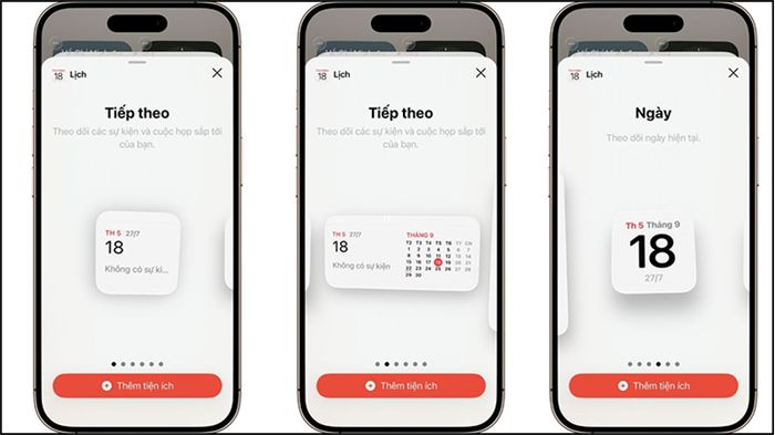 Bước 3: Màn hình sẽ hiển thị một số giao diện lịch, bạn có thể cuộn qua và chọn kiểu hiển thị phù hợp, sau đó nhấn vào ô “Thêm tiện ích”.
