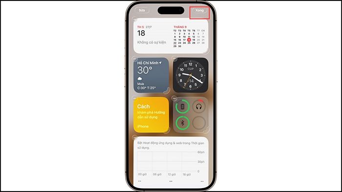 Bước 4: Sau khi trở lại màn hình tiện ích, nhấn vào ô “Xong” ở góc trên bên phải để hoàn tất quá trình.