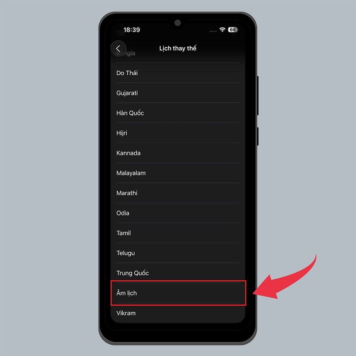 Chọn mục "Âm lịch" (Lunar Calendar)