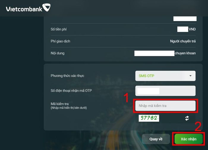 Kiểm tra lại toàn bộ thông tin và nhấn “Xác nhận” > Nhập mã OTP để hoàn tất giao dịch