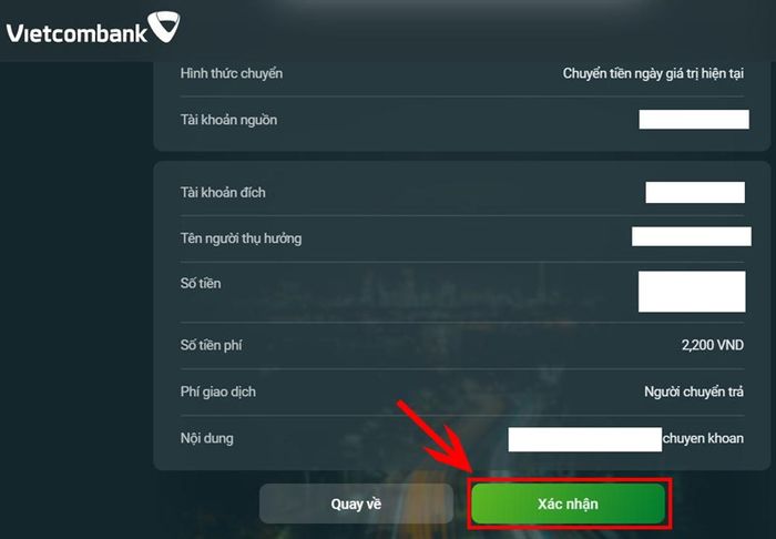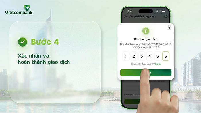 Bước 4: Kiểm tra lại toàn bộ thông tin giao dịch, sau đó nhấn “Xác nhận” > Nhập mã OTP và hoàn tất giao dịch.