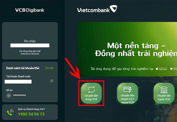 3. Hướng dẫn chuyển tiền qua VCB Digibank trên máy tính