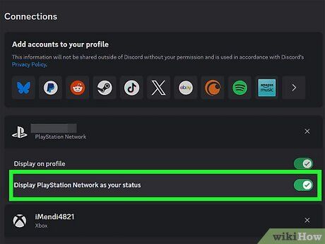 Bật tùy chọn Hiển thị [console] làm trạng thái của bạn. Đối với PlayStation, nó sẽ hiển thị là "Hiển thị PlayStation Network làm trạng thái của bạn." Còn đối với Xbox, nó sẽ hiển thị là "Hiển thị Xbox làm trạng thái của bạn."