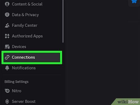 Nhấp vào Kết nối. Nó nằm trong thanh bên trái, gần phía trên, dưới tiêu đề "Cài đặt người dùng".