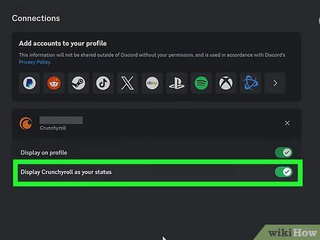 - Làm theo hướng dẫn trên màn hình để kết nối tài khoản Crunchyroll và Discord. Khác với các phương pháp khác, chỉ cần kết nối tài khoản của bạn sẽ tự động hiển thị anime bạn đang xem trên Discord.