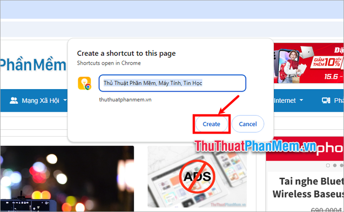 Bước 3: Hộp thoại Create a shortcut to this page (Tạo lối tắt cho trang này) sẽ xuất hiện, bạn chọn Create (Tạo).