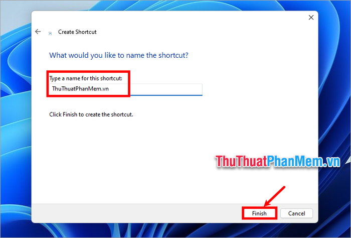 Bước 4: Nhập tên cho shortcut và chọn Finish để hoàn tất.