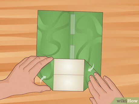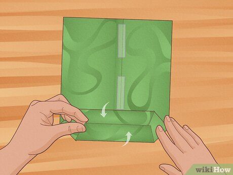 - Gập mỗi bên của tờ giấy thành ba phần sao cho chúng chồng lên nhau, rồi cố định chúng lại.