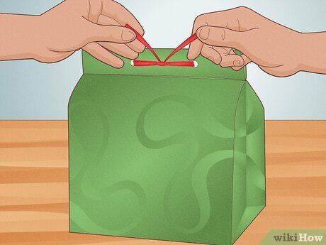 - Mở túi và đặt món quà vào bên trong, cùng với các vật liệu khác (nếu có).