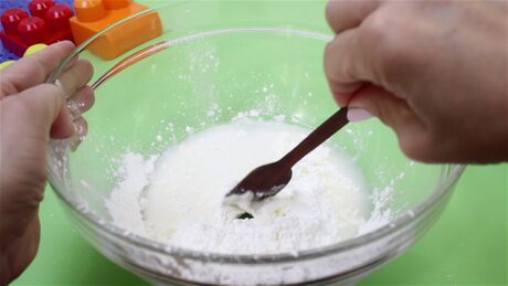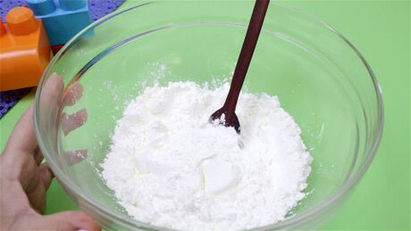 - Thêm một vài muỗng bột sơn tempera, bột màu nước, hoặc phấn màu để tạo màu cho cát mặt trăng.