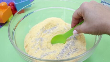 - Trộn vài muỗng nhũ vào cát để làm cho cát lấp lánh.