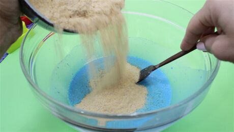 - Thêm một ít bột pha chế đồ uống, như Kool-Aid, để tạo màu và mùi thơm cho cát mặt trăng của bạn.