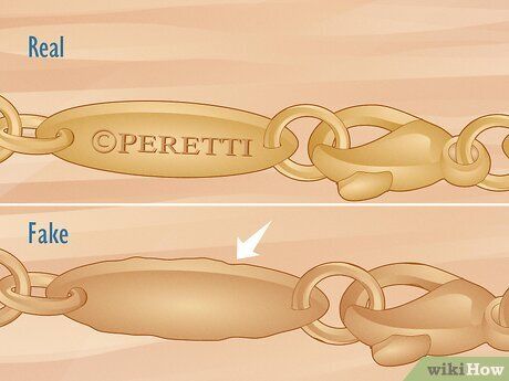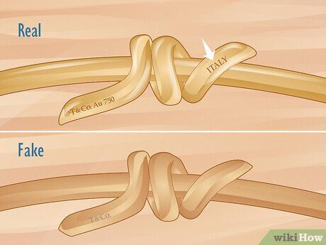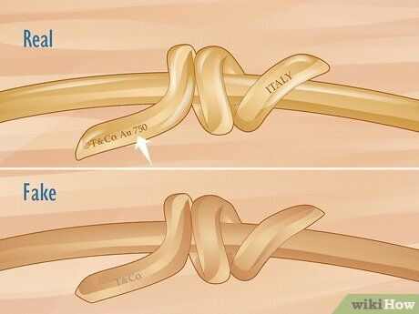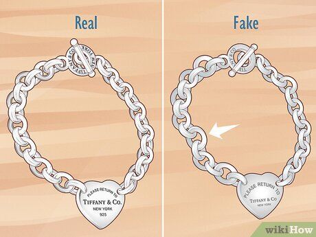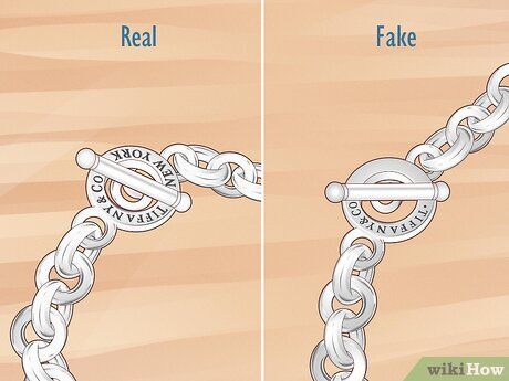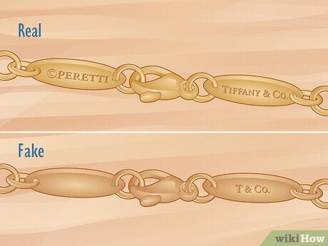 Các chi tiết quan trọng như logo Tiffany & Co. và các dấu khắc chất liệu thay đổi tùy theo kiểu vòng tay, vì vậy rất quan trọng để so sánh sản phẩm của người bán với hình ảnh chính thức của vòng tay thật.