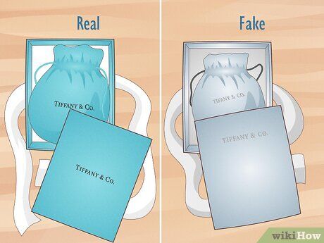 Dấu hiệu vòng tay giả: Vòng tay không đi kèm với hộp giấy màu xanh Tiffany được buộc bằng ruy băng trắng, hoặc hộp không phải màu xanh Tiffany. Dòng chữ “TIFFANY & CO.” trên hộp và túi hoặc hộp trang sức có thể bị sai (ví dụ: lệch, sai màu, sai phông chữ, không phải chữ in hoa).