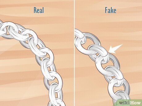 Dấu hiệu vòng tay giả: Các liên kết không được hàn chặt và có các vết đường nối rõ ràng, nơi có thể tách rời các liên kết, và có thể dễ dàng tách rời chúng.