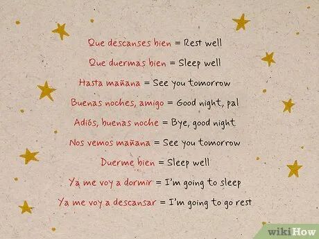 Các Bước Thực HiệnCách Nói Lời Chúc Ngủ Ngon Lãng Mạn Bằng Tiếng Tây Ban Nha