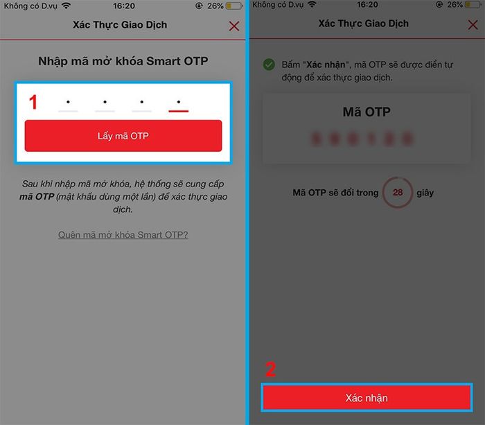 Bước 4: Nhập mã PIN của ứng dụng để nhận mã OTP, sau đó điền OTP và chọn “Xác nhận”.
