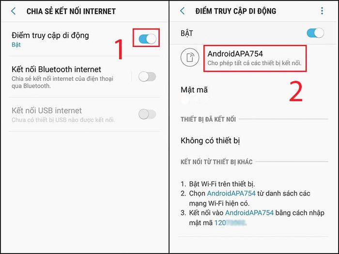 Bước 2: Kích hoạt Điểm truy cập di động → Chọn Tên thiết bị → Nhập tên theo ý muốn và nhấn Lưu để hoàn tất.