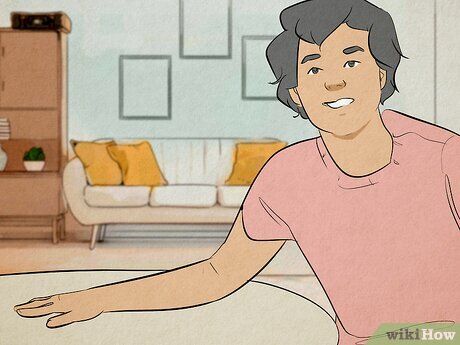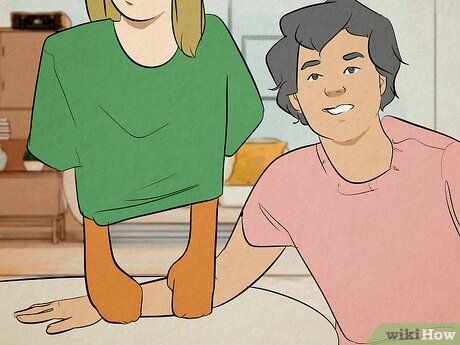 - Giấu chân trong áo hoặc hoodie và ngồi xổm trên ghế hoặc bàn. Hãy để Người giấu đôi chân của bạn bằng cánh tay của họ.