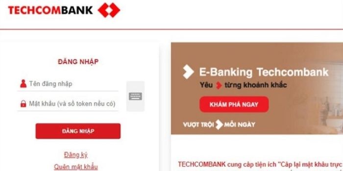Bước 1: Truy cập trang web Internet Banking của Techcombank và đăng nhập bằng tài khoản đã đăng ký với ngân hàng.