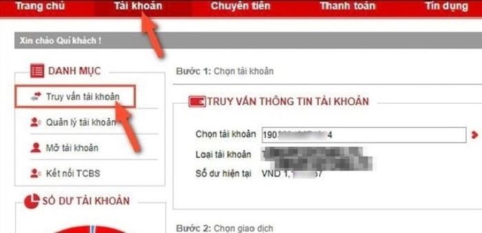 2. Hướng dẫn xem lịch sử giao dịch Techcombank trên website Internet Banking