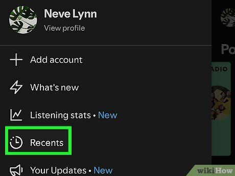 Kiểm tra các bài hát đã nghe gần đây trên SpotifyTrên điện thoại, bạn chỉ cần chạm vào avatar của mình trên màn hình chính và chọn Recents. Trên máy tính, nhấn vào nút hàng đợi ở góc dưới bên phải, sau đó chọn Recently played ở phía trên thanh bên phải. Bài hát vừa nghe gần đây nhất sẽ xuất hiện ở đầu danh sách trên điện thoại và cuối danh sách trên máy tính.