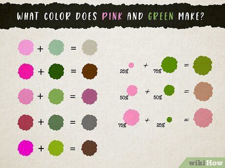 - Màu hồng là phiên bản sáng của màu đỏ—đỏ cộng với một ít màu trắng—và màu xanh được tạo ra từ màu xanh dương và vàng. Khi bạn pha trộn màu hồng và xanh, bạn thực tế đang trộn đỏ, vàng và xanh dương lại với nhau. Điều này khiến các màu này trung hòa, tạo ra một màu trung tính như nâu hoặc xám.