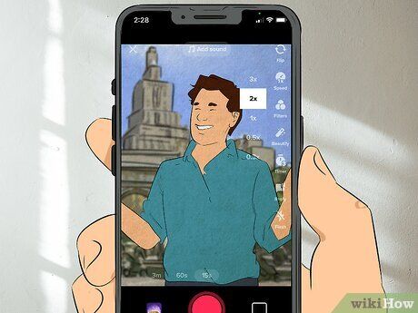 Quay một video của bạn đang nói và mở nó trong TikTok. Bạn có thể quay video bằng ứng dụng máy ảnh trên điện thoại, sau đó mở nó trong TikTok bằng biểu tượng “+” ở dưới cùng của ứng dụng, hoặc