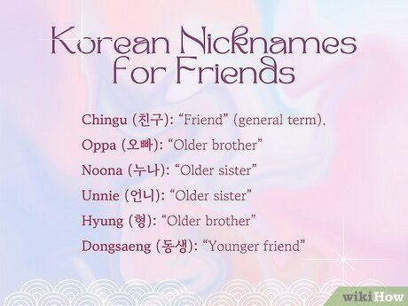 - Lưu ý rằng giọng điệu và mối quan hệ rất quan trọng ở Hàn Quốc. Nếu bạn không thân thiết với người kia hoặc họ lớn tuổi hơn bạn, có lẽ bạn nên tránh sử dụng biệt danh!