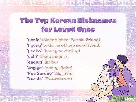 Thông thường, người Hàn Quốc sử dụng các danh xưng tôn trọng như biệt danh cho bạn bè và gia đình, ví dụ như “unnie” (chị gái/bạn nữ) hoặc “hyung” (anh trai/bạn nam). Đối với các cặp đôi lãng mạn, những từ như “yeobo” (người yêu, darling), “aein” (người yêu, sweetheart), hoặc “aegiya” (em yêu, baby) là những biệt danh phổ biến.