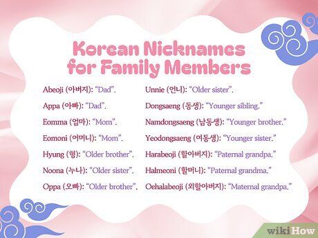 Biệt Danh Hàn Quốc Dành Cho Các Thành Viên Gia Đình