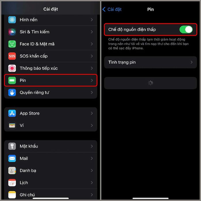 Tắt chế độ Tiết kiệm pin (Low Power Mode)