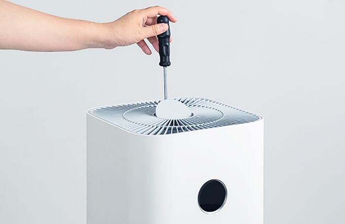 Sử dụng tua vít để tháo lưới tản nhiệt máy lọc không khí Xiaomi