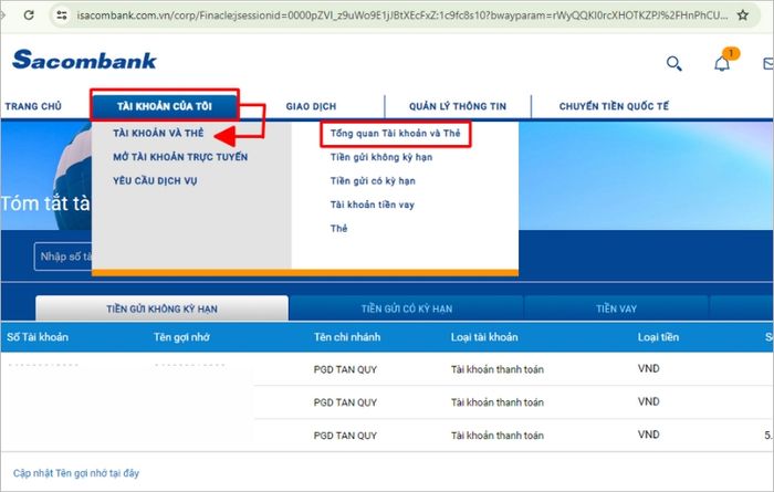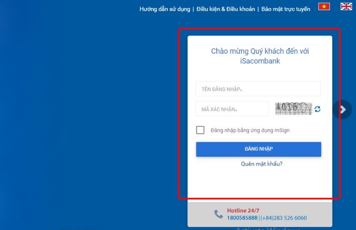 Bước 1: Truy cập vào website chính thức của Sacombank tại đường link https://www.isacombank.com.vn/ và đăng nhập vào tài khoản của bạn.