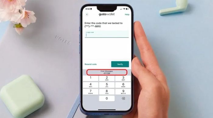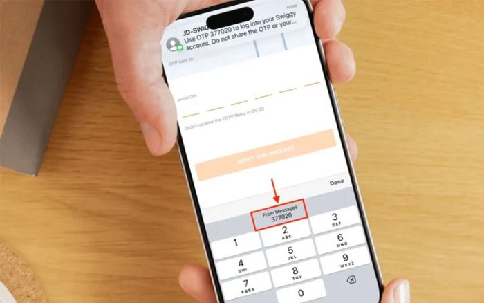 Bước 5: Khi nhận mã OTP qua tin nhắn hoặc ứng dụng xác thực, mã sẽ xuất hiện ngay phía trên bàn phím. Bạn chỉ cần chạm vào mã để tự động điền vào ô yêu cầu.