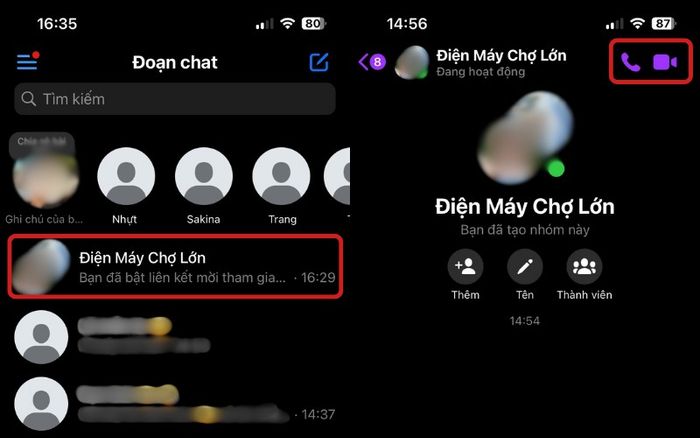 Nhấn vào biểu tượng điện thoại hoặc máy quay để khởi động cuộc gọi nhóm.