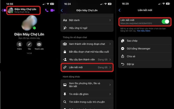 Kích hoạt công tắc ‘Liên kết mời’ để thiết lập quyền tham gia công khai cho nhóm Messenger.