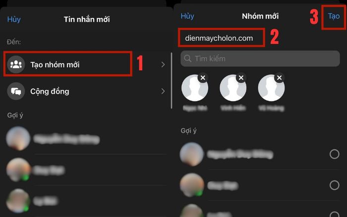 Bước 2: Nhấn chọn ‘Tạo nhóm mới’ > Thêm những tài khoản bạn muốn vào nhóm > Đặt tên nhóm > Nhấn nút "Tạo" để hoàn tất.