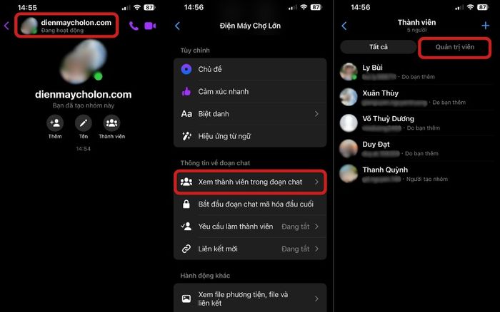 Kiểm tra thành viên và quản trị viên của nhóm: Nhấn vào tên nhóm > Chọn ‘Xem thành viên trong đoạn chat’ > Tại đây, bạn có thể xem danh sách thành viên và xác định ai là quản trị viên của nhóm.